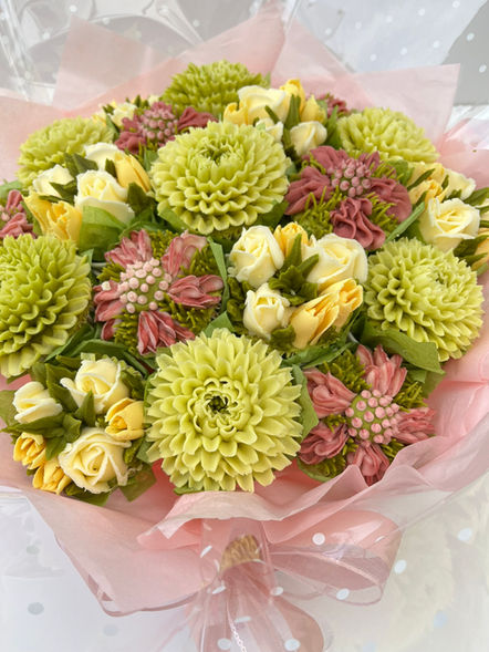 My luxury bouquets are presented with an array intricately piped flowers using multiple colours and with natural buttercream.